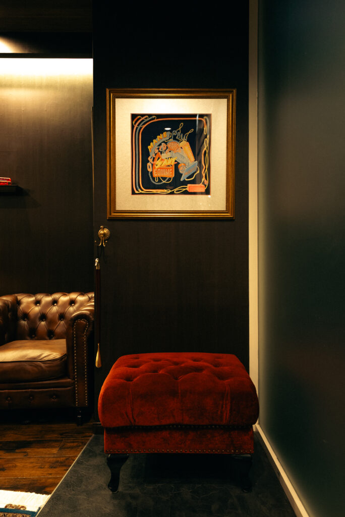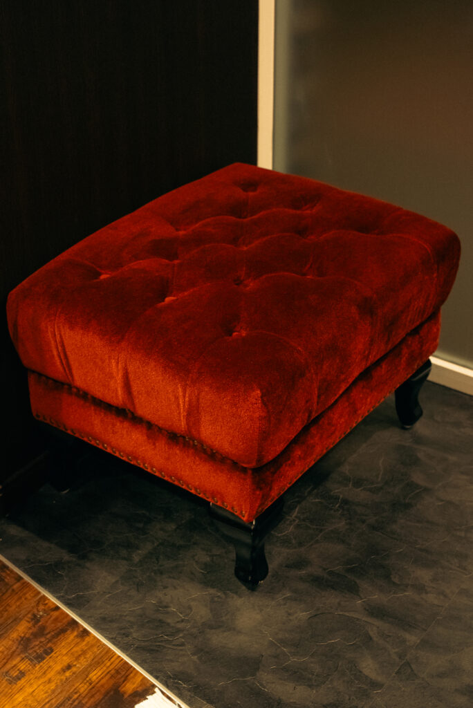 扉を開け、最初に出迎えるこのスツールの質感から、AKILOUNGEのこだわりを感じ取っていただければ幸いです。