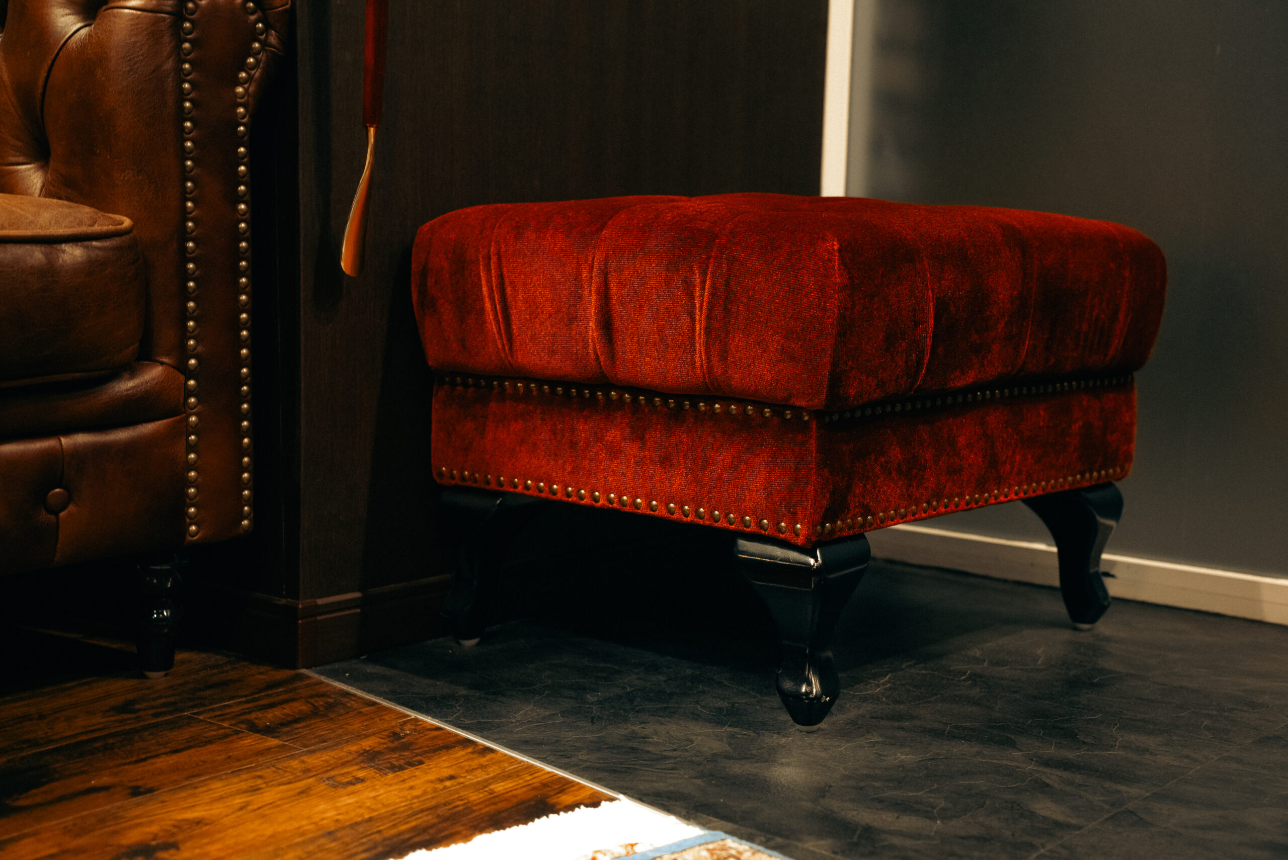 扉を開け、最初に出迎えるこのスツールの質感から、AKILOUNGEのこだわりを感じ取っていただければ幸いです。